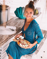 Wrap yourself in effortless goddess vibes with our Priscilla Floor-Length Knitted Cover Up. Designed exclusively for Heatherleigh Swimwear, this lightweight, open-knit beauty is the ultimate boho beachwear essential. Whether you're heading to a tropical getaway, poolside brunch, or sunset stroll, this piece flows with you — bringing a touch of elevated resort style to every moment.